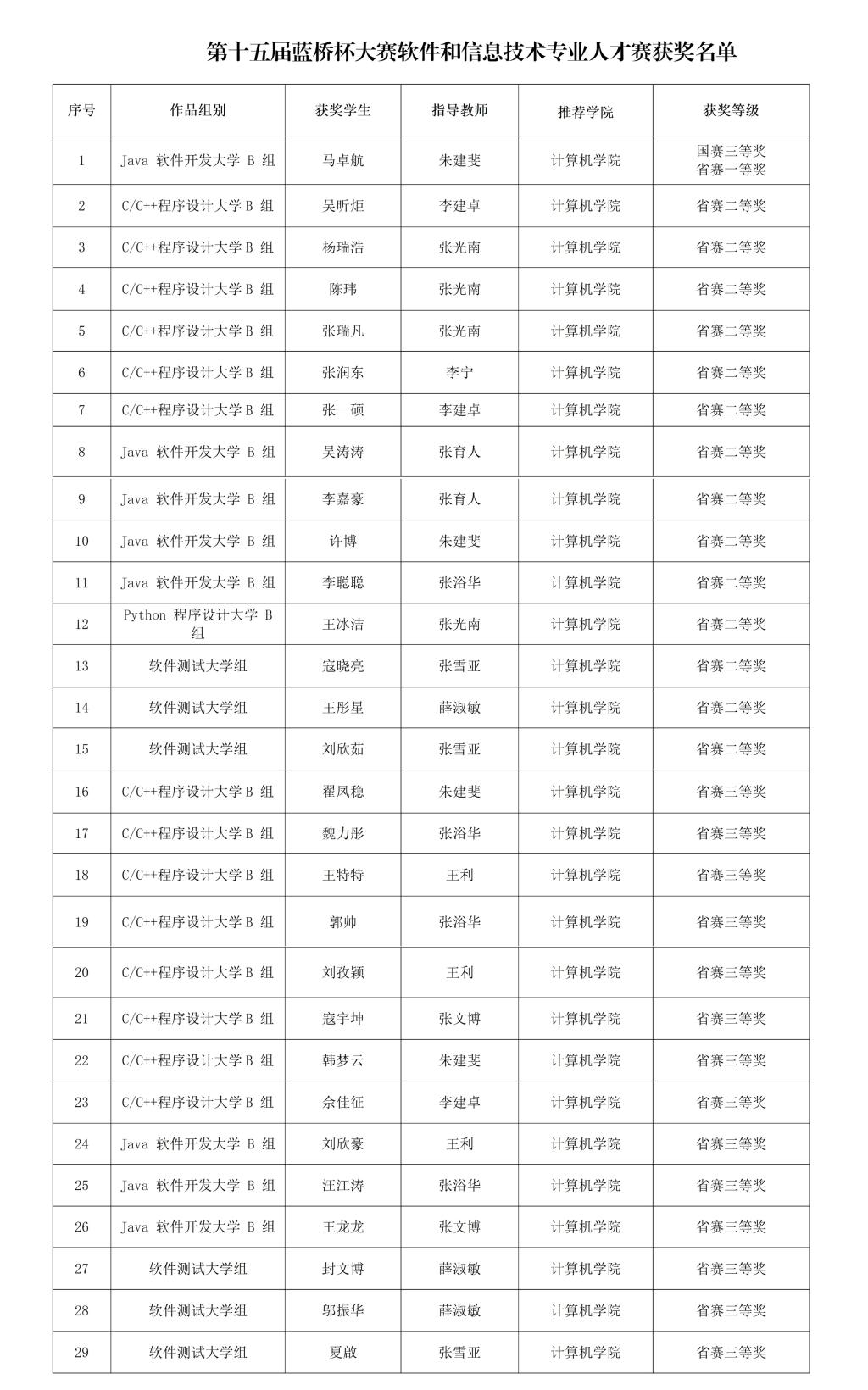 近日,第十五届蓝桥杯大赛全国总决赛成绩揭晓。beat365学生分别在视觉艺术设计赛项、软件和信息技术专业人才赛项中,获得全国总决赛一等奖1项、二等奖1项、三等奖3项,省赛一等奖5项、二等奖24项、三等奖24项、优秀奖5项,比赛成绩创参加该项赛事以来最好成绩。