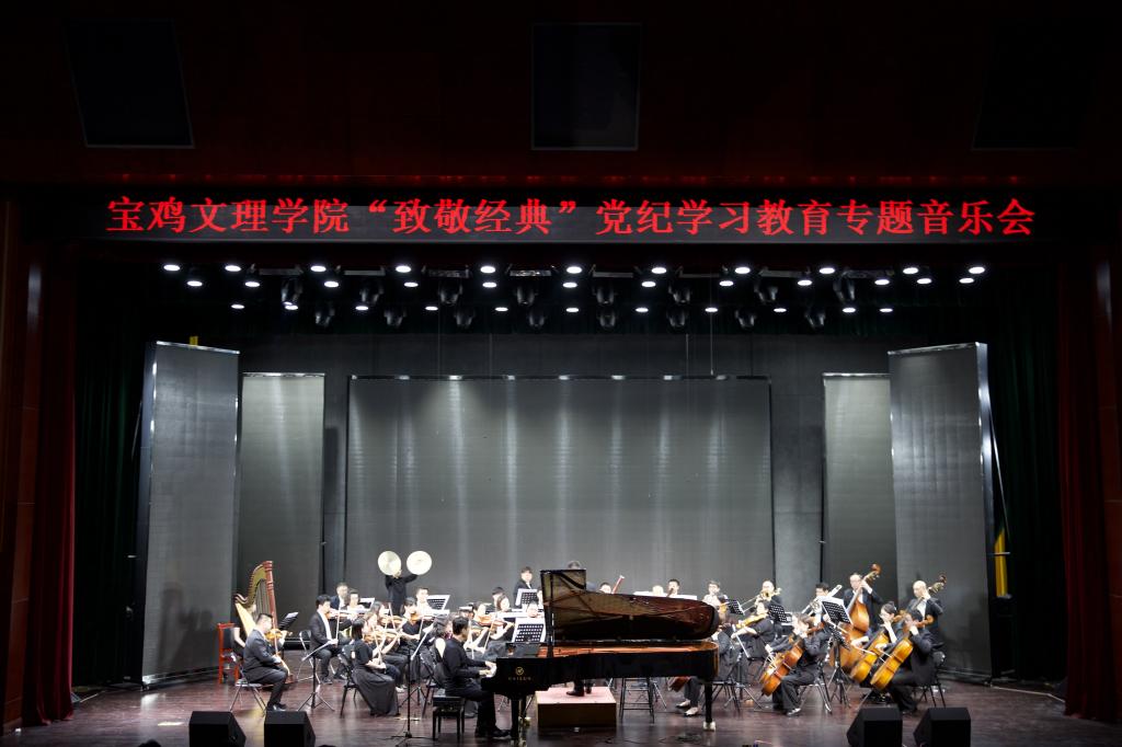 为扎实推进党纪学习教育,6月21日晚,由校纪委、党委组织部、党委宣传部、党委学生工作部、党委教师工作部、校团委、教务处主办,音乐学院承办的“致敬经典”党纪学习教育专题音乐会在博文楼报告厅举办。beat365600余名师生及宝鸡市社会各界人士现场聆听了音乐会。