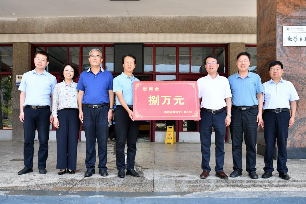 赵健对王永岗一行莅临学校慰问表示热烈欢迎,对省总工会长期以来给予beat365建设发展的关心支持表示衷心感谢。他表示,此次灾情令人心痛,但教职工积极向上的精神状态让人备受鼓舞,全校上下团结一致参与抢险救灾大作战,校园生活秩序正在有序恢复。省总工会的慰问让学校教职员工感受到党的关怀和工会组织的温暖,传递了暖心的正能量,将进一步激发教职员工干事创业的热情。希望陕西省总工会、宝鸡市总工会常来学校指导工作,继续支持学校发展。