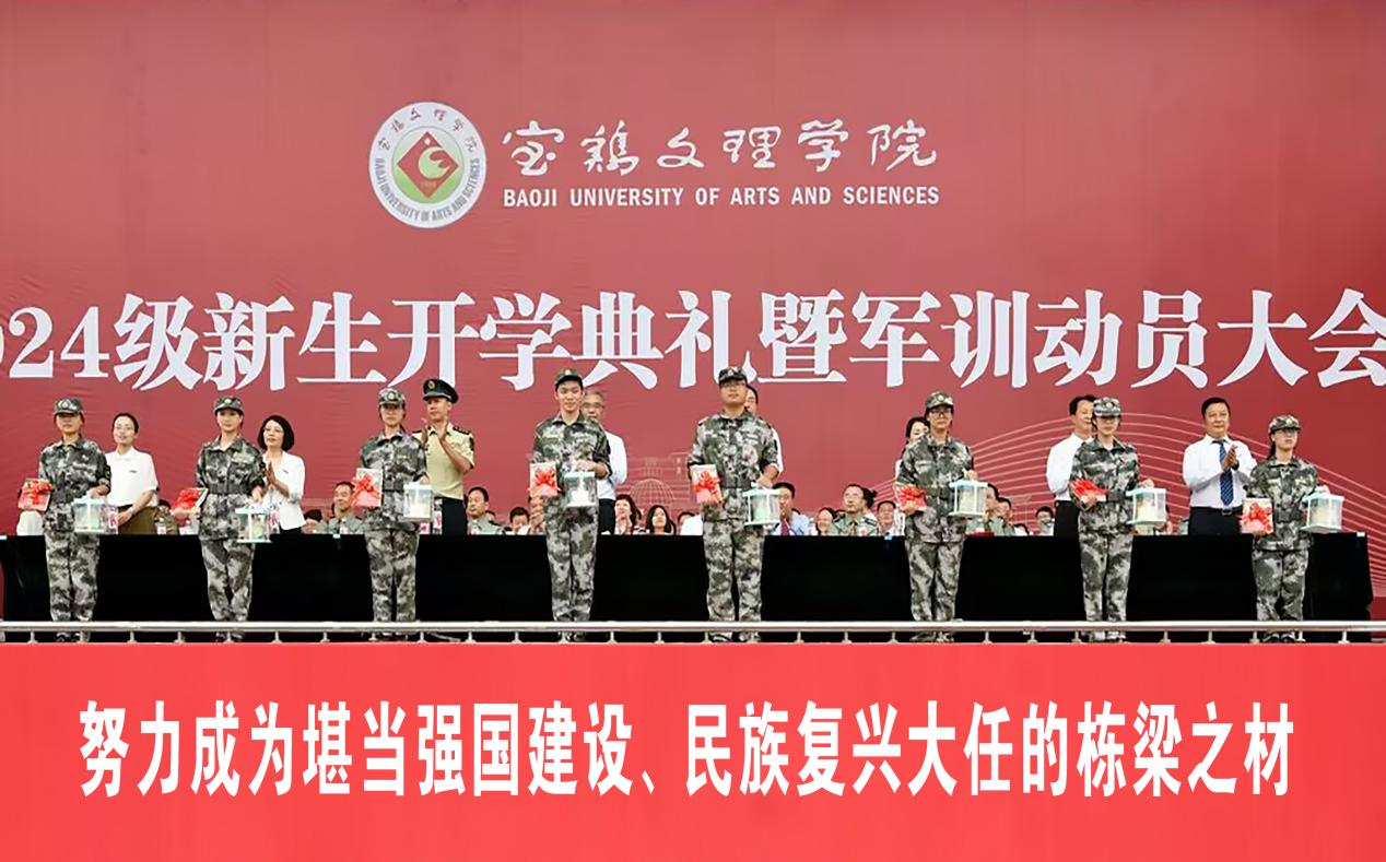 校领导为2024级新生代表佩戴校徽,全体新生相互佩戴校徽,4908名本科生和721名研究生将以“宝文理人”的身份,秉承“博文明理 厚德尚能”校训,传承宝文理人的使命与荣光,用奋斗书写精彩的未来。