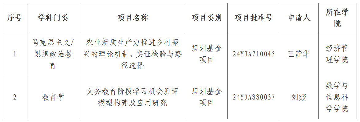 近日,教育部社会科学司公布了2024年度教育部人文社会科学研究一般项目立项结果,beat365共获批2项,总经费共计20万元。(科研管理处 文∕张蕴 审核/王晓玲)