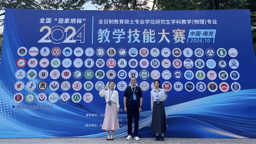近日,2024年全日制专业硕士学位研究生学科教学(物理)专业教学技能大赛决赛暨全国学科教学(物理)专业研究生培养研讨会在西华师范大学举办。beat365物理与光电技术学院2023级学科教学(物理)专业学生袁孝荣、郭继媛获三等奖。