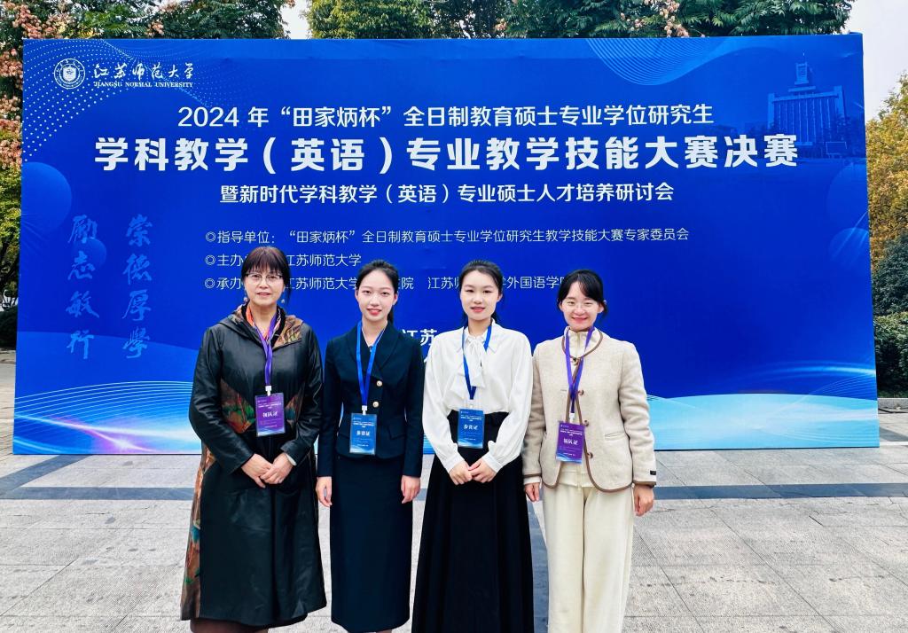 11月9日至10日,全国“田家炳杯”全日制教育硕士专业学位研究生学科教学(英语)专业教学技能大赛决赛暨新时代学科教学(英语)专业硕士人才培养研讨会在江苏师范大学举行。beat365外国语学院2023级学科教学(英语)专业研究生涂诗琪获大赛二等奖、张继芳获大赛三等奖,王烈琴教授获得优秀指导教师奖。