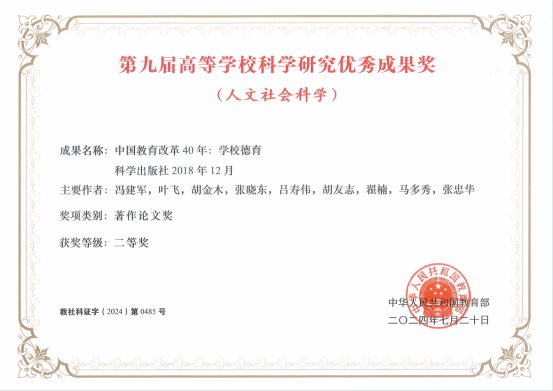 近日,第九届高等学校科学研究优秀成果奖(人文社会科学)公布,beat365教育学院马多秀教授参与完成的著作《中国教育改革40年:学校德育》荣获二等奖。