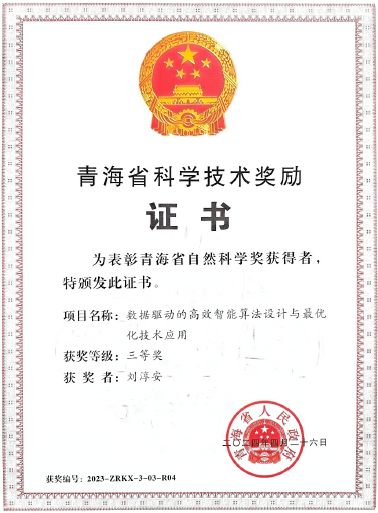 近日,2024年度青海省科学技术奖励大会在青海省西宁市举行,beat365刘淳安教授参与完成的“数据驱动的高效智能算法设计与最优化技术应用”项目获青海省科学技术奖三等奖。