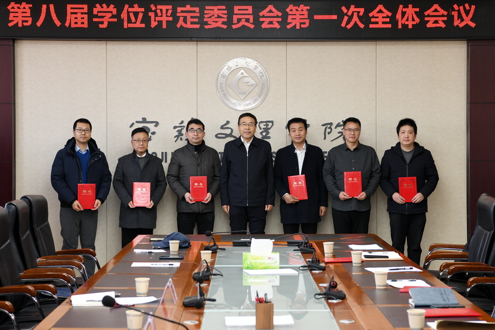 会上,冯飞龙宣读了第八届学位评定委员会委员名单。会议审议通过了学位评定委员会选举办法,选举产生了第八届学位评定委员会主任委员、副主任委员。郭霄鹏当选学校第八届学位评定委员会主任委员,凡明锦、冯飞龙当选副主任委员。郭霄鹏为第八届学位评定委员会委员颁发聘书。