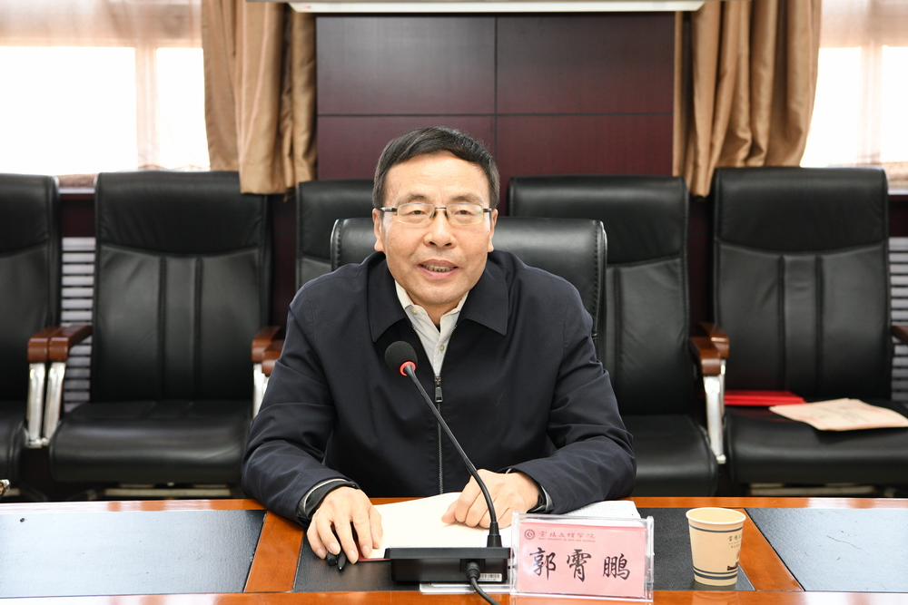 郭霄鹏代表学校向第八届学位评定委员会的成立和新当选的委员表示祝贺,并对全体委员提出了三点要求:一是加强学习,提升能力和水平。希望各位委员认真学习贯彻《中华人民共和国学位法》,做到学位评定工作有理有据,切实保障学位授予质量。二是认真履职尽责,圆满完成使命与任务。希望各位委员明确学位工作中的各项要求,维护学位评定工作的公平、公正,维护学位授予工作的严肃性、权威性。三是发挥引领作用,推动学校高质量发展。希望各位委员发扬主人翁意识,更加关心、支持和投入学校发展,团结带领广大师生,为学校高质量发展做贡献。