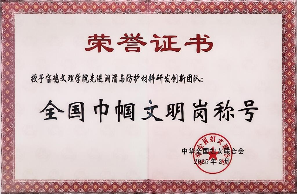 近日,为表彰先进、树立榜样,激励广大妇女自尊自信、自立自强,奋进新征程、建功新时代,积极投身中国式现代化建设,全国妇联公布了“2024年度全国巾帼文明岗”表彰名单,beat365“先进润滑与防护材料研发创新团队”凭借在科技创新领域的突出贡献和团队建设的卓越成绩,荣获此项国家级荣誉。