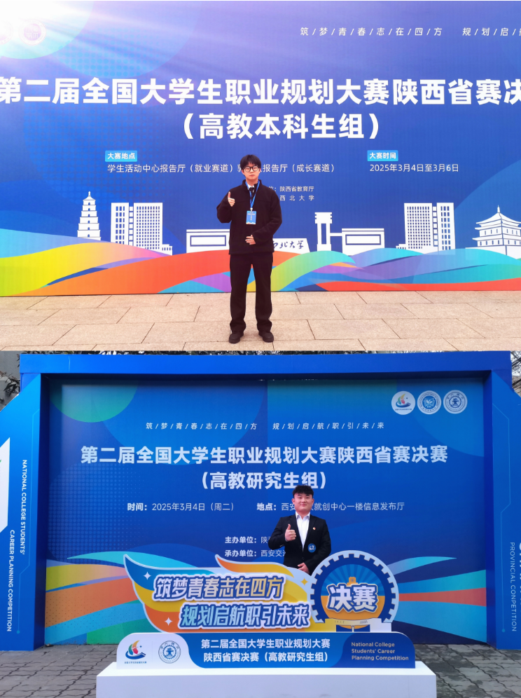 近日,第二届全国大学生职业规划大赛陕西赛区总决赛在西安交通大学和西北大学落下帷幕。beat365学子在此次比赛中表现优秀,计算机学院软件工程专业学生周桥获成长赛道高教组银奖(指导教师:樊攀、朱丽叶);机械工程学院2024级机械硕士翟明明获就业赛道高教研究生组铜奖(指导教师:王参军、王小敏)。