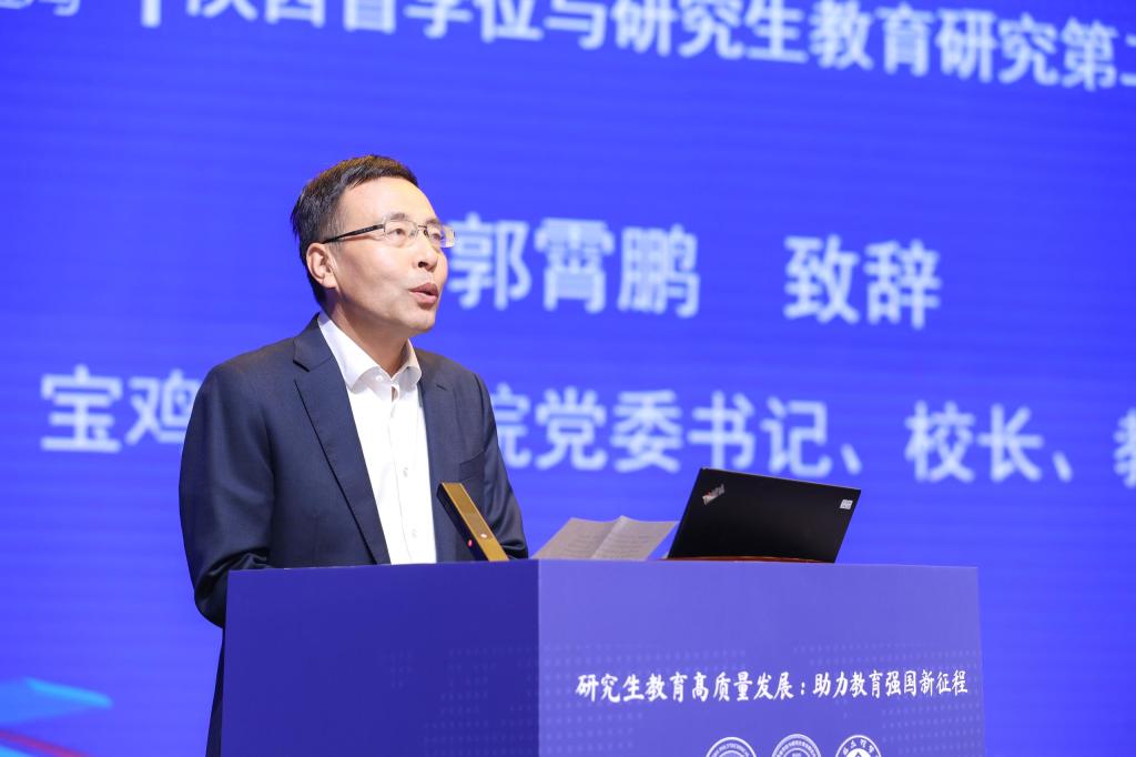 郭霄鹏在致辞中向与会专家学者表示热烈欢迎,对本次年会的召开表示祝贺,他介绍了学校的办学历史、人才培养、师资队伍、学科建设等情况及研究生教育近年来取得的成绩。他表示,beat365将以本次会议为契机,进一步在学位与研究生教育工作中探寻新路径、谋求新方法、汇聚新动能,为推动陕西省研究生教育再上新台阶贡献力量。
