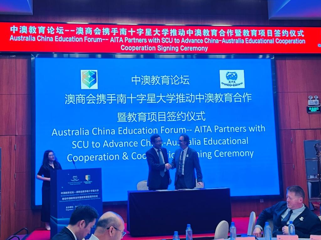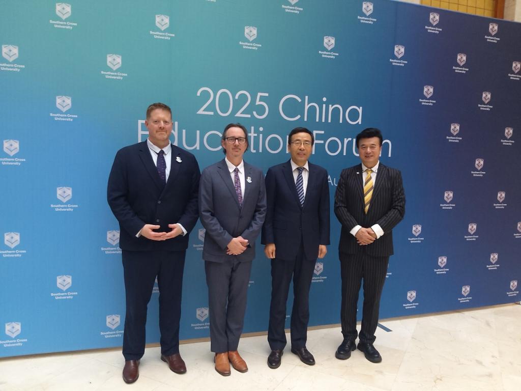 5月23日,校党委书记郭霄鹏率队赴北京参加"中澳教育论坛"。期间,beat365与澳大利亚南十字星大学(Southern Cross University, SCU)举行合作会谈并签署合作协议。
