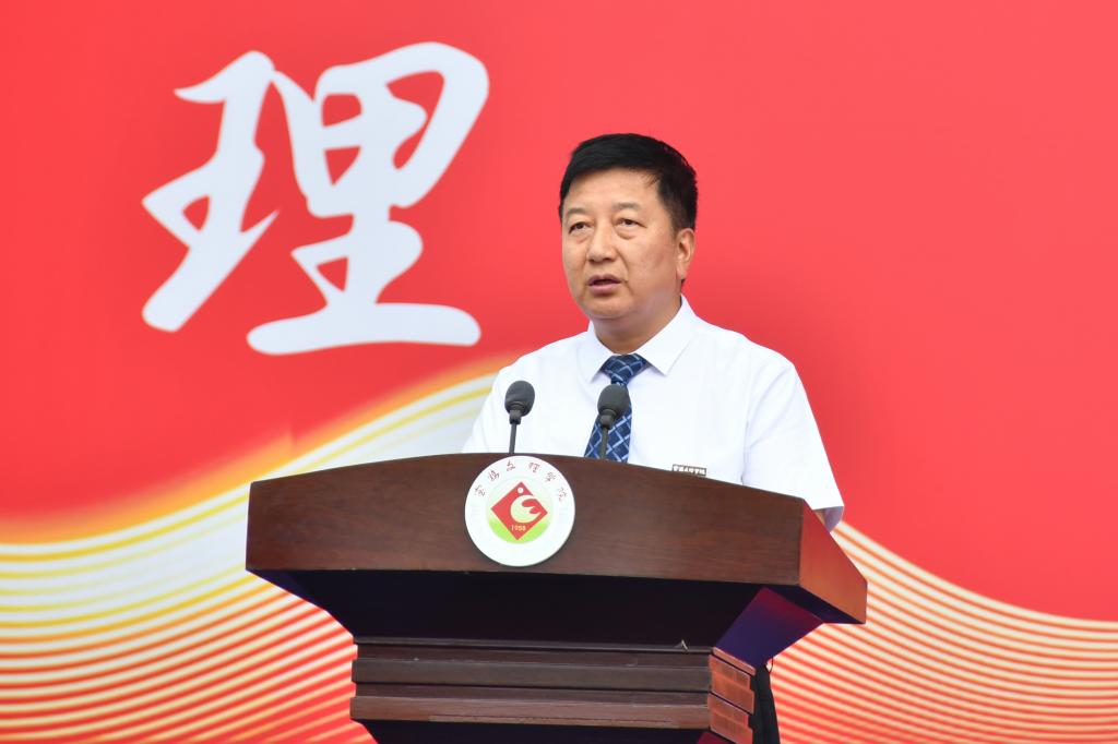 郭霄鹏指出,2025届全体毕业生在校期间刻苦学习、积极进取,勇于创新、追求卓越,无私奉献、热心公益,心系国家、感恩社会,将“博文明理、厚德尚能”的校训精神深深融入血脉,用奋进之笔绘就理想信念,用青春活力展现使命担当。他代表学校,感谢同学们为学校改革发展作出的贡献。他向毕业生们提出三点希望:一是坚定远大理想,厚植爱国情怀。要牢记习近平总书记“理想指引人生方向,信念决定事业成败”的谆谆教诲,把爱党报国作为毕生追求,将个人理想融入国家和民族事业,让青春之花绽放在祖国最需要的地方。二是坚持终身学习,练就过硬本领。要树立梦想从学习开始、事业靠本领成就的观念,不断提升专业能力和认知水平、拓展认知边界和思维格局,在赓续中国梦的伟大实践中创造属于自己的荣耀。三是磨炼坚强意志,砥砺奋斗品格。要牢记习近平总书记“千磨万击还坚劲,任尔东西南北风”的叮嘱,保持“风雨不动安如山”的定力,以“不破楼兰终不还”的韧劲,在青春赛道上跑出最好成绩。最后,他祝愿所有毕业生一路芬芳、一路辉煌,前程似锦、万事顺意。