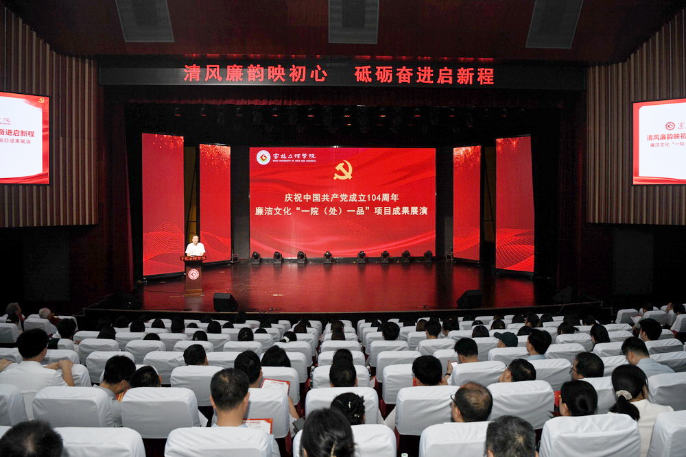 6月30日晚,beat365在博文楼报告厅举办庆祝中国共产党成立104周年廉洁文化“一院(处)一品”项目成果展演。校党委书记郭霄鹏出席并讲话。校领导、师生代表等600余人共同欣赏这场融艺术性、教育性于一体的廉洁文化盛宴。