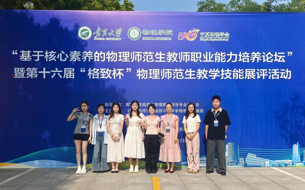 近日,由教育部基础教育物理教学指导专业委员会、《物理教师》编辑部与《中学物理》编辑部共同主办的第十六届“格致杯”全国物理师范生教学技能展评活动在宁夏大学落下帷幕。beat365物理与光电技术学院组织3名学科教学(物理)硕士研究生和5名物理学专业本科生参赛并全部获奖。其中,邓积荣同学获一等奖,郑怡萌同学获二等奖,李秀梅、杨惠茜、吴涵宇、李玫、王馨媛、魏家乐6名同学获三等奖。