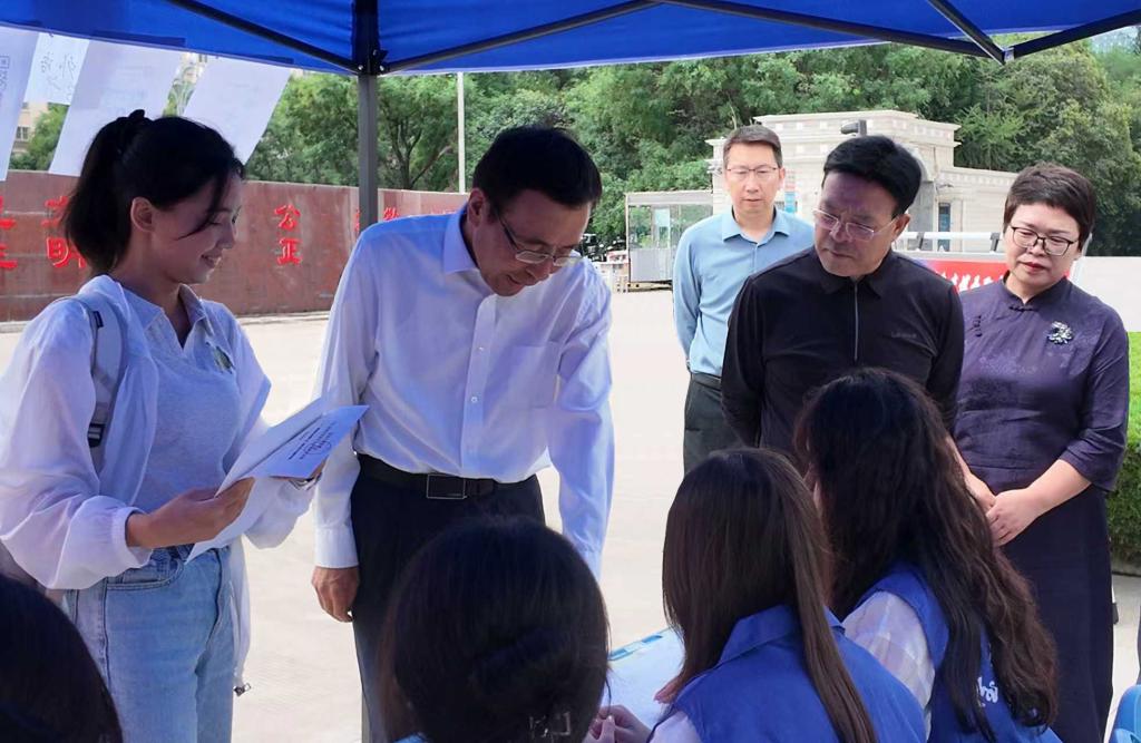 9月3日,来自全国各地的2025级研究生新生带着梦想与期待汇聚宝鸡,正式开启“博文明理,厚德尚能”的人生新篇章。校党委书记郭霄鹏、党委副书记韩干校现场指导迎新工作,了解研究生迎新工作进展情况。