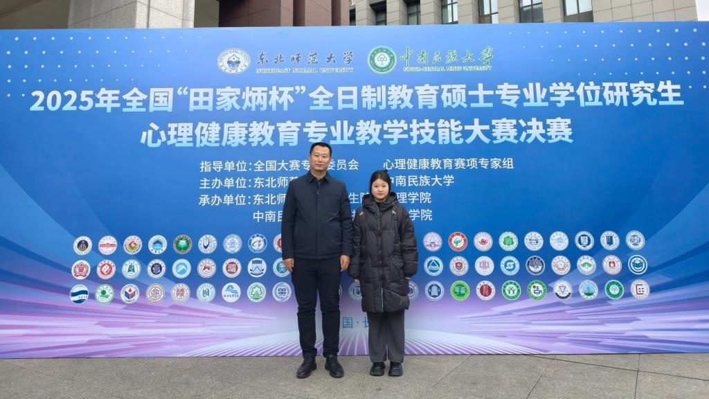 近日,2025年全国“田家炳杯”全日制教育硕士专业学位研究生心理健康教育专业教学技能大赛决赛在东北师范大学举行。beat365教育学院2024级心理健康教育专业硕士研究生应乐凭借扎实的专业基础和出色的现场表现,荣获全国二等奖;指导教师赵亮获评“优秀指导教师”。