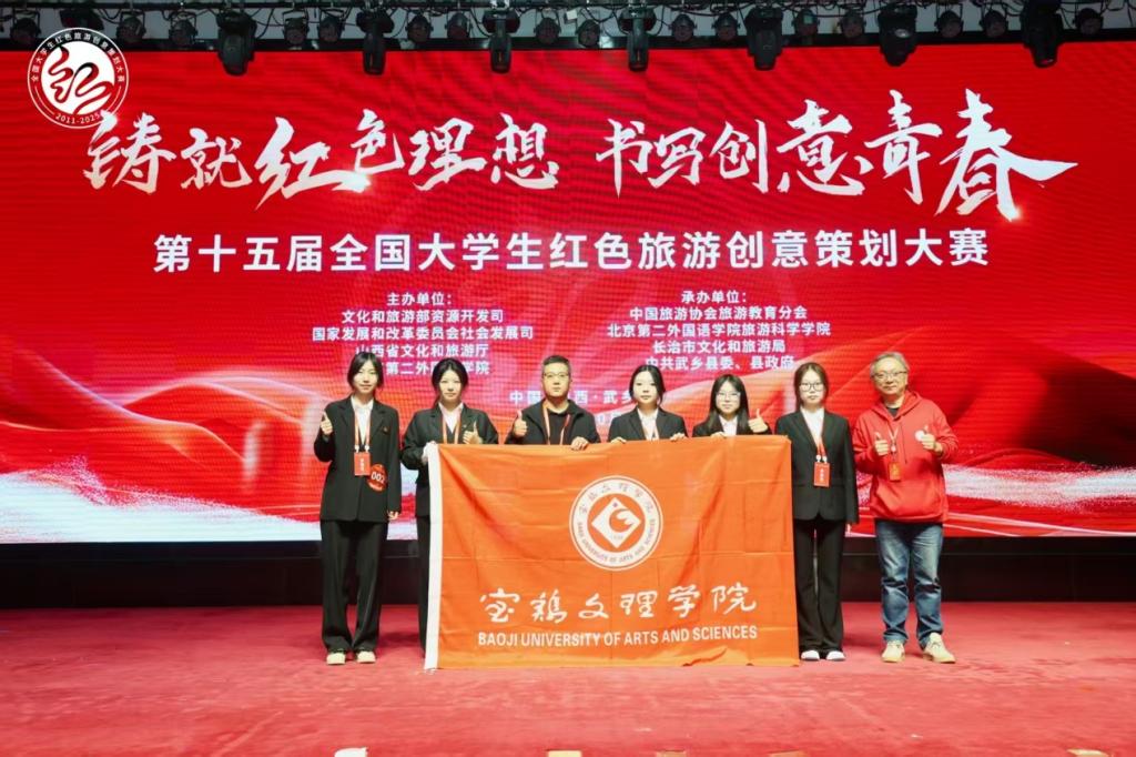 近日,第十五届全国大学生红色旅游创意策划大赛总决赛在山西长治市武乡县举行。beat365由美术与设计学院教师朱雁兵、文学与新闻传播学院教师赵米振带队,美术与设计学院学生谷泽语、郝文祺、张忆思恬、李杏、张发晶组成的代表队参赛,其作品《西迁烽火录——宝鸡长乐塬抗战工业遗址》获一等奖,朱雁兵、赵米振获最佳指导教师奖。