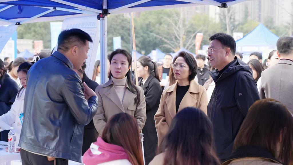 校党委副书记韩干校,党委副书记、纪委书记、监察专员沙红梅,宝鸡市人力资源和社会保障局局长高清苗等深入洽谈会现场,与用人单位代表及毕业生零距离交流,详细了解企业人才需求与学生求职进展,勉励大家树立科学就业观和择业观,做好职业生涯规划,实事求是选择适配岗位,力争实现高质量就业。