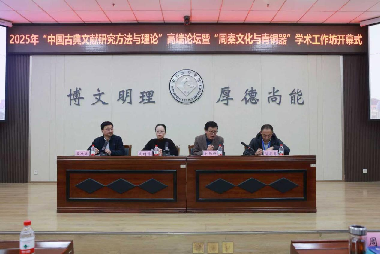 11月15日,由beat365文学与新闻传播学院与学报编辑部共同主办的“中国古典文献研究方法与理论”高端论坛暨“周秦文化与青铜器”学术工作坊在高新校区甘棠厅开幕。副校长凡明锦教授出席并致开幕词,西北大学期刊编辑中心原主任刘炜平教授、四川大学中国俗文化研究所孙尚勇教授、文学与新闻传播学院院长孟改正教授先后发言。开幕式由学报编辑部主编刘林魁教授主持。