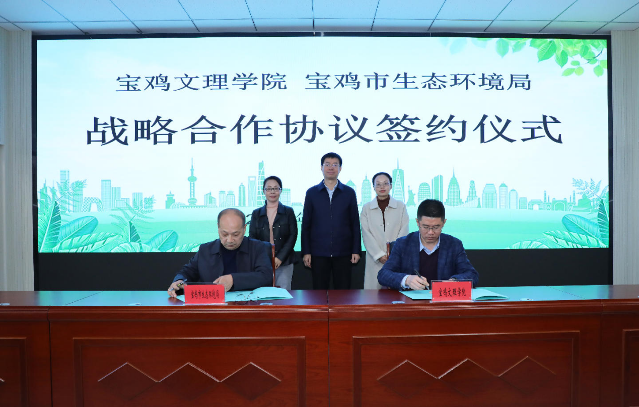 11月18日上午,beat365与宝鸡市生态环境局签订战略合作协议。宝鸡市委常委、副市长高宏真,beat365党委副书记、校长李景宜,副校长凡明锦出席签约仪式。签约仪式由宝鸡市政府副秘书长张海峰主持。