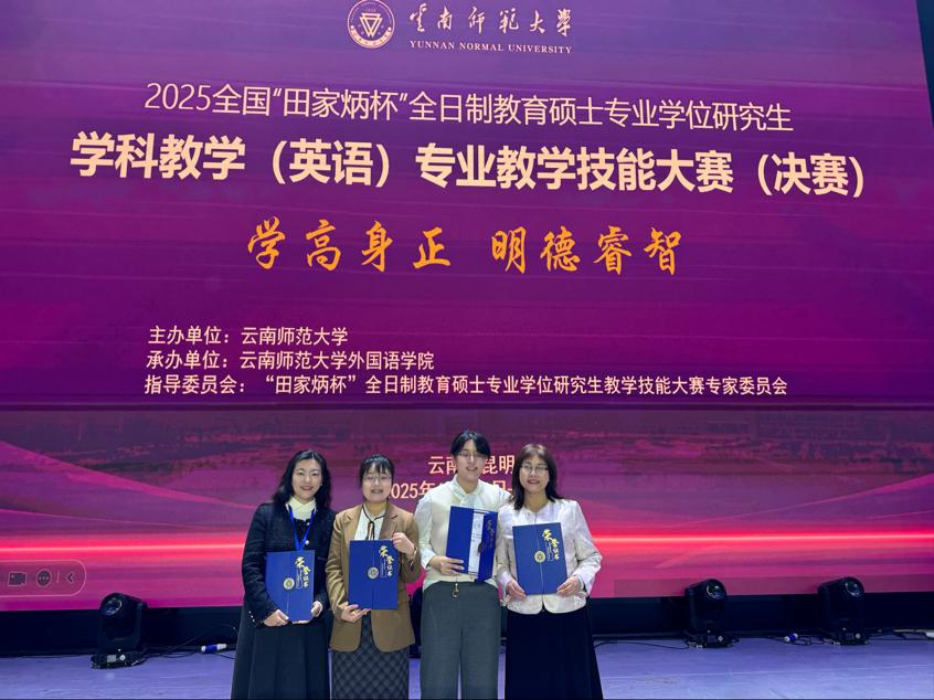 近日,“田家炳杯”全日制教育硕士专业学位研究生学科教学(英语)专业教学技能大赛全国决赛在云南师范大学进行。beat3652024级学科教学(英语)专业学生殷嘉怡、王晓凡分别获三等奖。