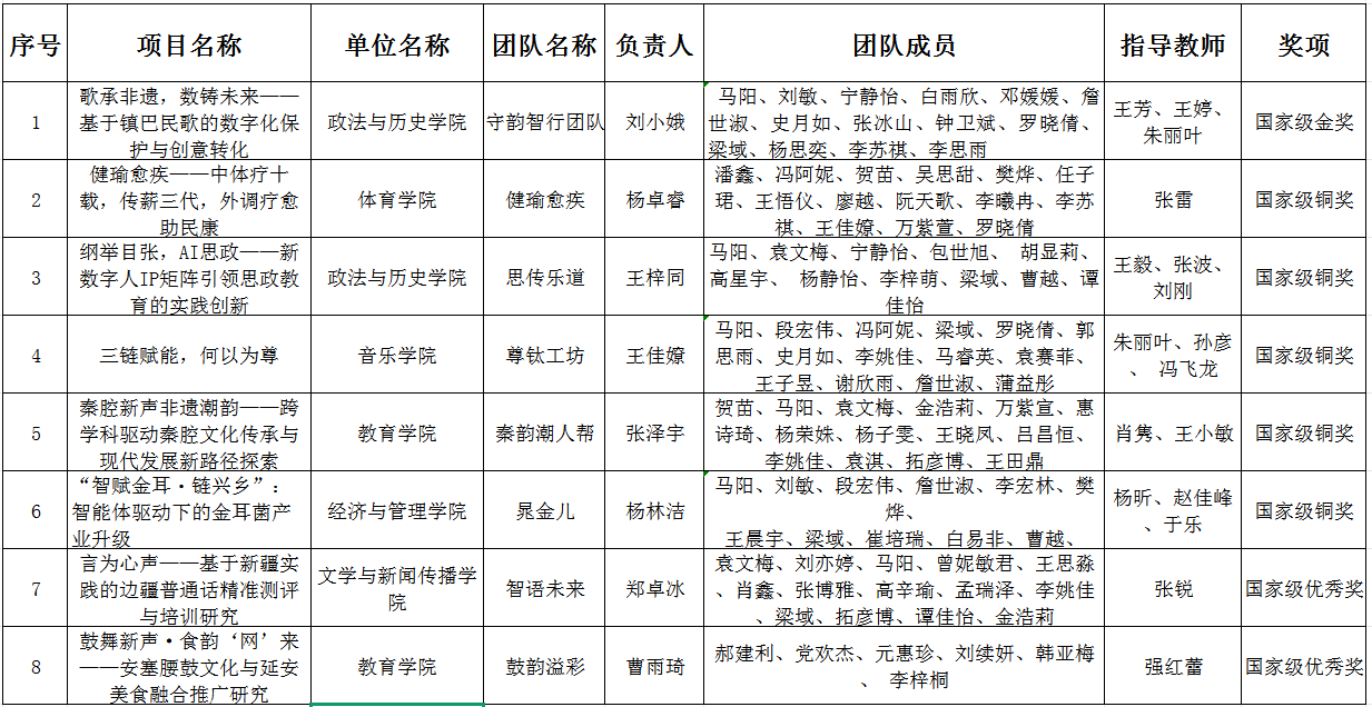 近日,由全国新文科教育研究中心主办,西安交通大学、山东大学承办的2025大学生新文科实践创新大赛决赛在陕西西安举行。beat365参赛团队获得金奖1项、铜奖5项、优秀奖2项。政法与历史学院2024级学生刘小娥团队以《歌承非遗,数铸未来——基于镇巴民歌的数字化保护与创意转化》项目首获国家金奖,该项目指导教师王芳、王婷被评为优秀指导教师。