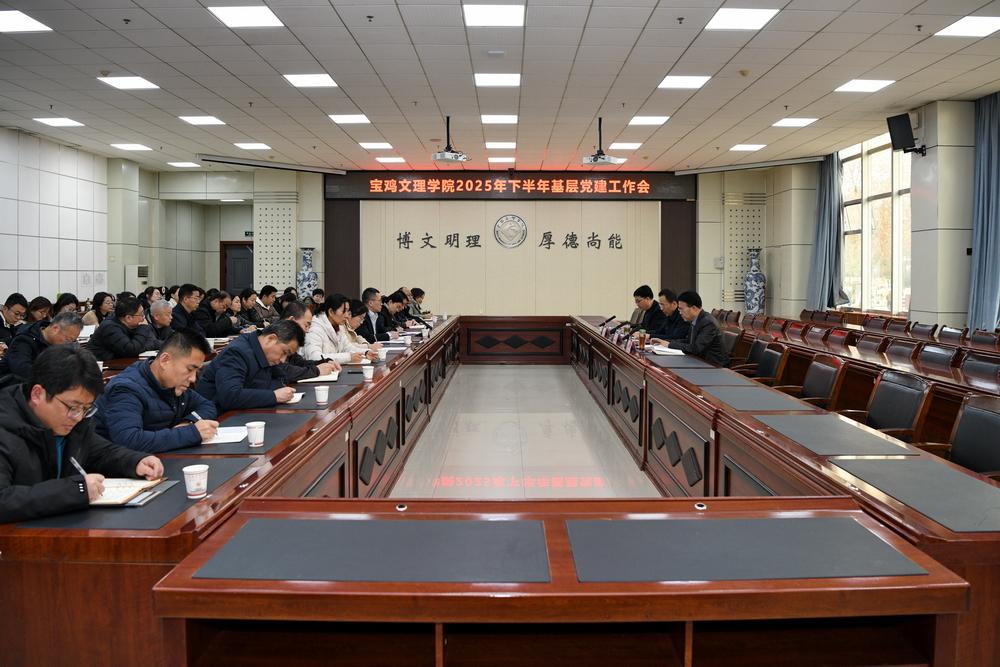 郭霄鹏充分肯定了一年来学校基层党建工作取得的成绩,指出学校各项事业稳步推进、持续向好发展凝结着全体党务工作者的心血和担当,值得肯定和珍惜。他就进一步做好基层党建工作提出五点意见。一要强化政治引领,把准办学方向。始终把政治建设摆在首位,健全议事决策机制,切实将学习教育成果转化为推动事业发展的实践成效,以实际行动践行对党忠诚。二要深化思想引领,凝聚奋进合力。坚持把“学思想”作为党委会第一议题、集体学习第一主题、干部培训第一主课,分层分类精准施教,在深化内化转化上持续用力,确保理论学习入脑入心。三要坚持强基固本,夯实基层堡垒。深化党建“双创”建设,从严抓好党员教育管理,牢固树立大抓基层的鲜明导向,着力构建上下贯通、执行有力的组织体系。四要锚定“一融双高”,激活发展动能。始终把立德树人作为融合的出发点和落脚点,以党支部为纽带组建科研攻关团队,切实将党建优势、人才优势转化为服务地方经济社会发展的实际成效。五要狠抓正风肃纪,涵养优良作风。把师生的急难愁盼问题当作党建工作的责任清单,让基层党建工作有内容、有成果、有影响,以严实作风推动基层党建工作开创新局面。