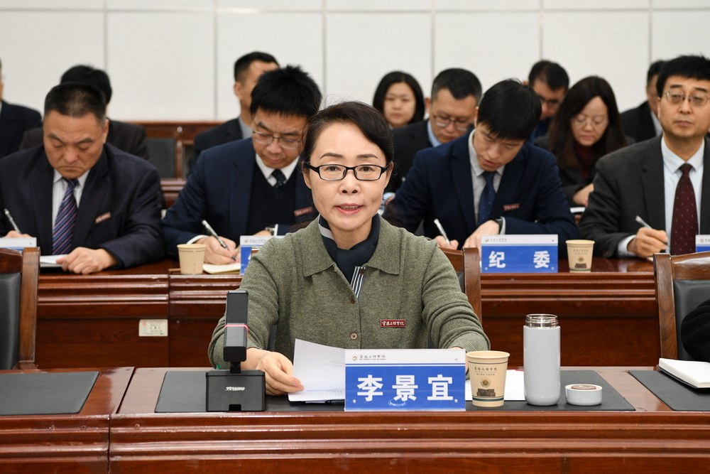 李景宜代表学校作表态发言。她首先感谢专家组对学校评估整改工作成效的肯定及所提出的宝贵指导意见,并表示学校对专家组的反馈意见照单全收。她郑重表态:一是提高政治站位,强化顶层设计,把牢育人方向;二是坚持问题导向,深化内涵建设,健全长效机制;三是强化质量理念,培育质量文化,提升教育质量。