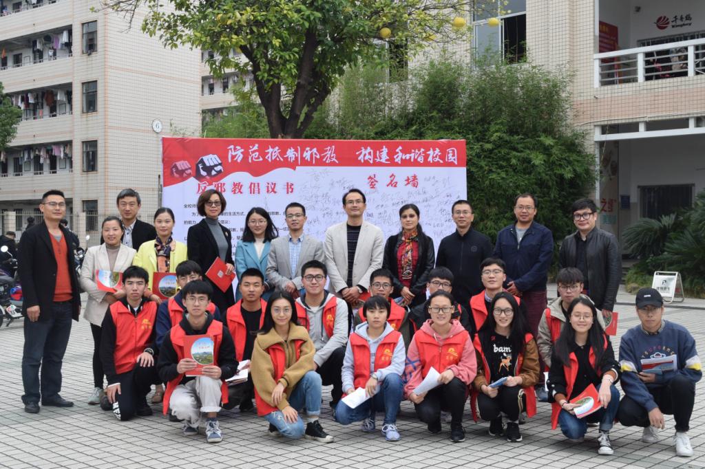 为进一步加大反邪教宣传教育力度,宣传普及反邪防邪知识,提高广大师生识别邪教抵制邪教的能力,金沙官网反邪教协会联合机关党委第四党支部、1991cc金沙青年志愿者协会在保卫处的联系下于河西食堂开展主题为“防范抵制邪教,构建和谐校园”的反邪教倡议签名活动,同时进行大学生反邪教知识的问卷调查及宣传品发放,将细节贯彻其中。