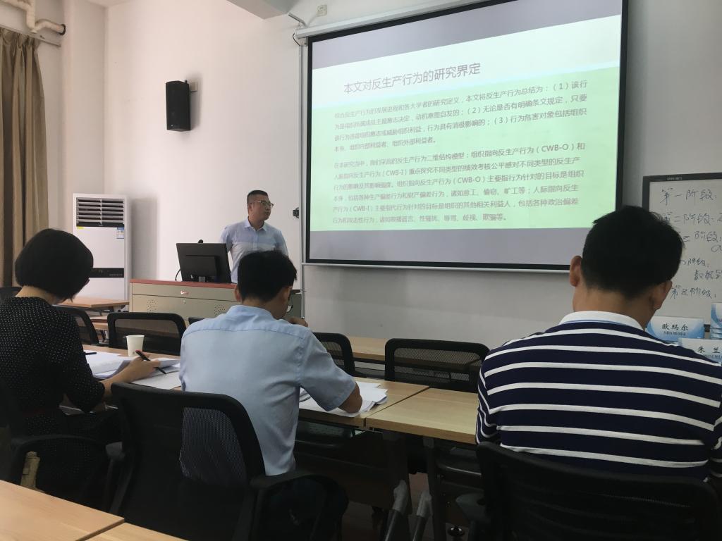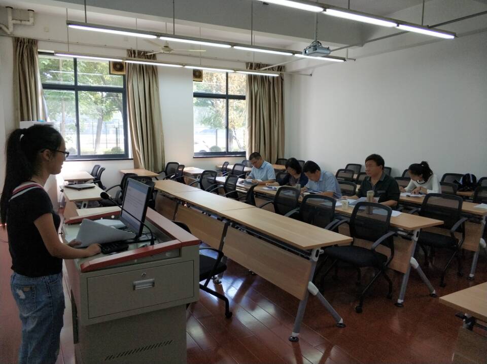 在答辩环节中,16级研究生用PPT的形式就论文的选题目的与意义、国内外研究情况、研究方法和论文主要框架、研究的创新点及主要的研究结论向各小组答辩委员会做了简要陈述。与会的各位老师在听取学生的陈述后,针对论文的格式、内容、研究方法等提出了改善意见。