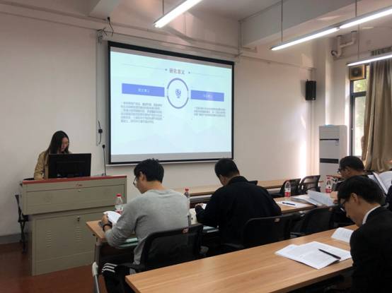 在答辩环节中,17级研究生用PPT的形式就论文的选题目的与意义、研究假设、研究的创新点及主要结论进行简要陈述。与会的各位老师在听取学生的陈述后进行提问,同时针对论文的格式、内容、研究方法等提出了相关意见和建议。