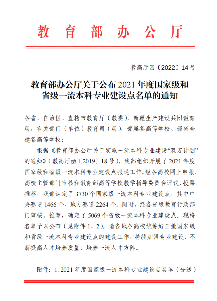 近日,教育部办公厅发布《关于公布2021年度国家级和省级一流本科专业建设点名单的通知》(教高厅函 [2022] 14号),金沙官网工商管理专业成功入选国家级一流专业建设点。这是校院两级高度重视、全力以赴、团结奋斗取得的振奋人心的成果,是对学院专业内涵建设的充分肯定。