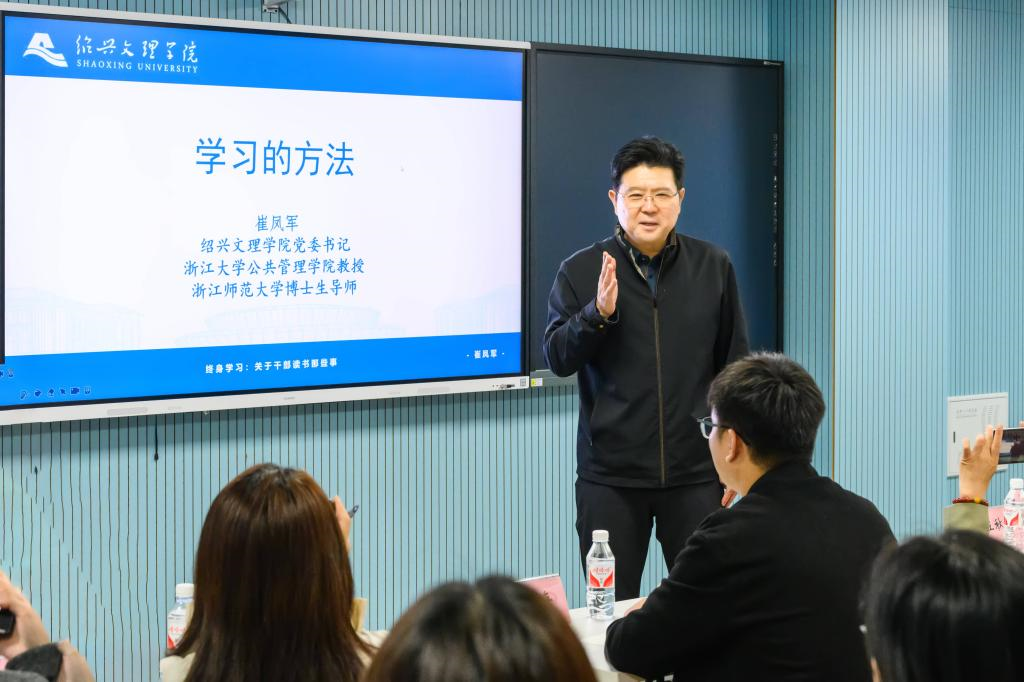 围绕“学习的方法”,崔凤军高度强调读书和终身学习的重要性。他指出,创新大国就是学习大国,重视学习是干部保持优良学风的基本要求,会读书、善读书是干部的基本功,也是赋予人生以丰厚意义的有效路径。实力就是干部的竞争力,提升善于接受新理念、掌握新知识、开拓创新、学习新技术、把握新情况、发现新问题的“新实力”,是培养适应时代发展需要好干部的内在要求。