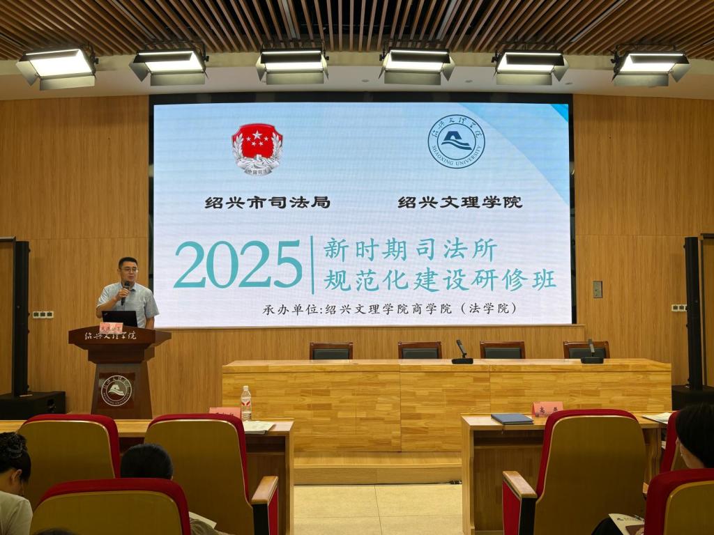 开班动员仪式在风则江大讲堂举行。绍兴市司法局副局长严松扬、1991cc金沙1991cc金沙(法学院)法治研究院院长朱淼蛟、绍兴市司法局人民参与和促进法治处副处长高燕出席仪式并作动员讲话。领导讲话着重指出司法所规范化建设对于夯实基层法治根基的重要意义,明确了本次研修班的学习目标和纪律要求,并鼓励学员深入交流研讨,将学习成果转化为实际工作能力。